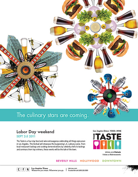 This campaign heralded the debut of a new annual L.A. food festival, The Taste. To differentiate the nine different ticketed events, we created a kaleidoscope design for each event. Our strategy was to reflect the glamour of L.A.’s celebrity-studded culinary scene while communicating the celebratory nature of the festival.